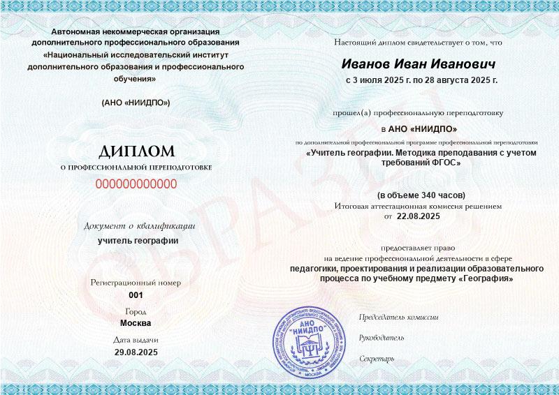 Учитель географии. Методика преподавания с учетом требований ФГОС (340ч)
