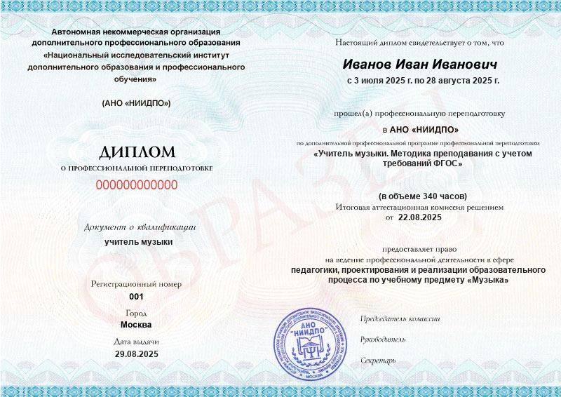 Я прошёл переподготовку на учителя музыки через онлайн-систему и остался очень доволен! Такой формат обучения оказался очень удобным и гибким — я мог учиться в удобное для себя время и в комфортной обстановке. Программа была насыщенной, интересной и хорошо структурированной, а материалы — доступными и понятными. Благодаря этой переподготовке я получил новые знания. Рекомендую всем, кто ценит комфорт и эффективность обучения!