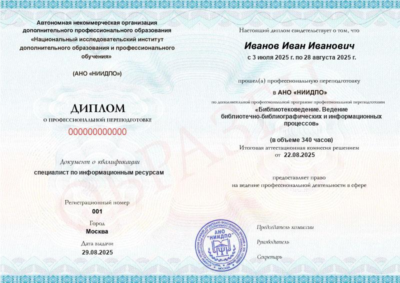 Да, документы оформляются на бланках с защитой от подделок, заполняются на русском языке, в них ставится печать АНО «НИИДПО».