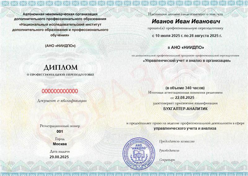 Диплом управленческого учета, выданный АНО «НИИДПО», принимают работодатели и аттестационная комиссия.