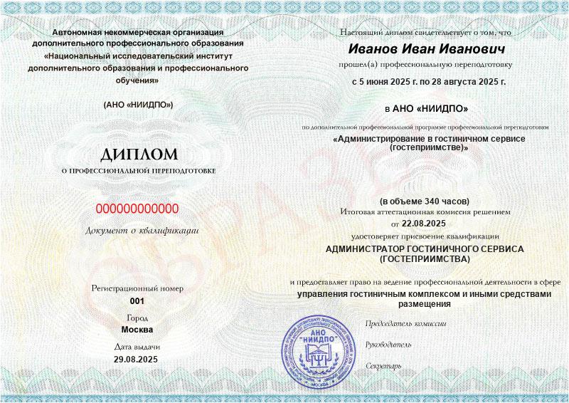 Обзор программы профессиональной переподготовки «Администрирование в гостиничном сервисе (гостеприимстве)» с присвоением квалификации «Администратор гостиничного сервиса (гостеприимства)»