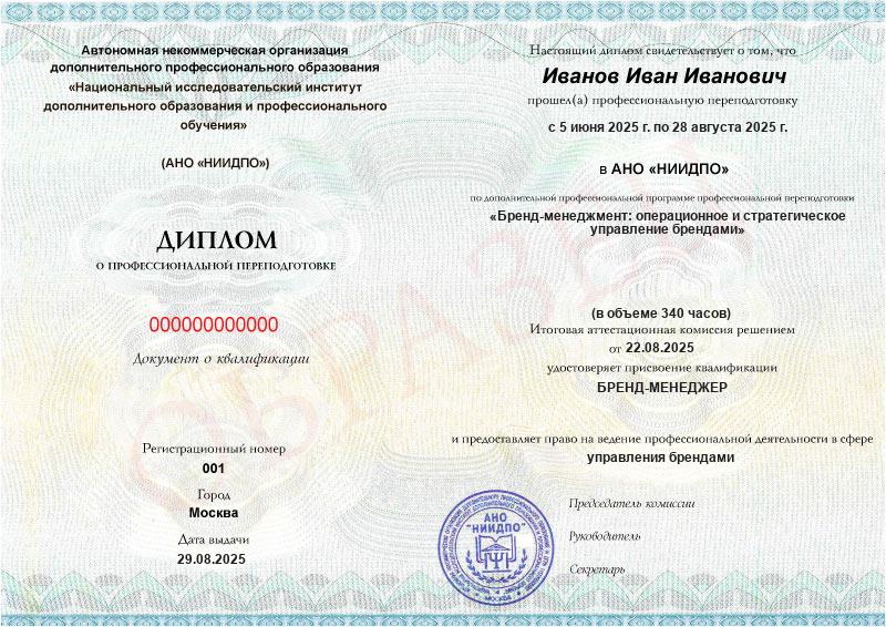 - Квалификация: бренд-менеджер