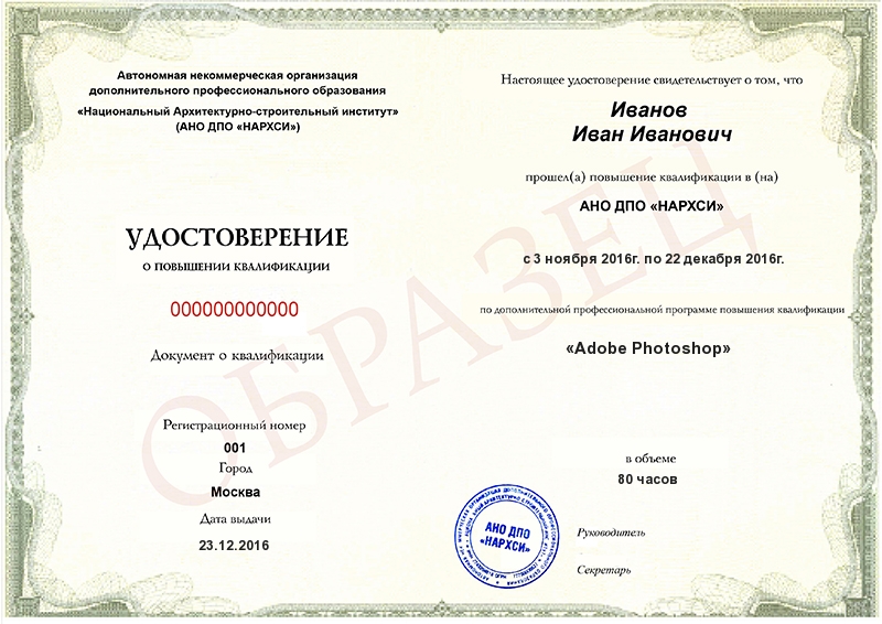 Удостоверение о повышении квалификации Удостоверение действует на территории всей России и признается государственными и частными организациями