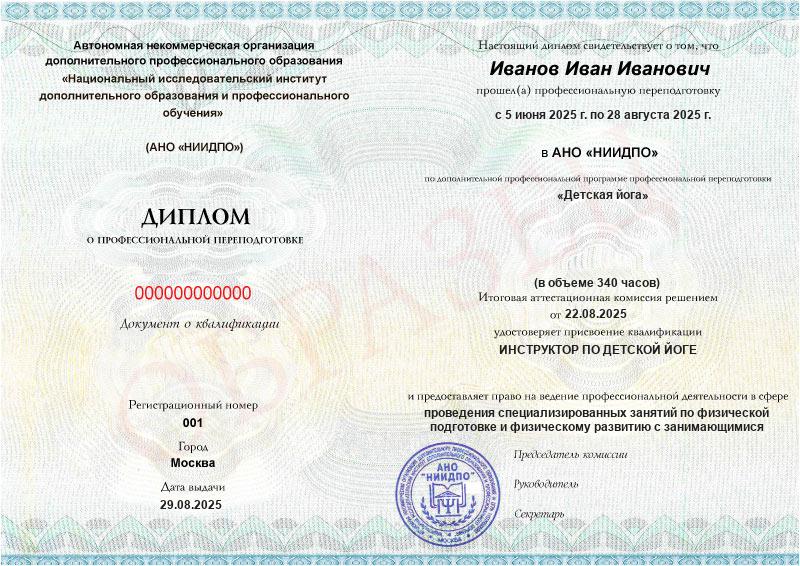 Обзор программы профессиональной переподготовки «Детская йога» с присвоением квалификации «Инструктор по детской йоге»