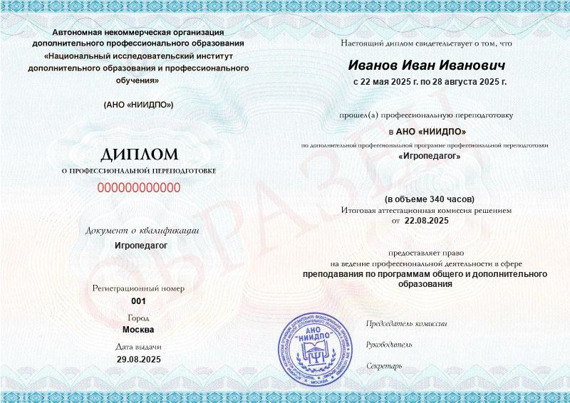 Учебный план программы профессиональной переподготовки «Игропедагог» с присвоением квалификации «ИГРОПЕДАГОГ»
