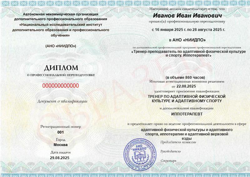 Обзор программы профессиональной переподготовки «Тренер-преподаватель по адаптивной физической культуре и спорту. Иппотерапевт» с присвоением квалификации «Тренер по адаптивной физической культуре и адаптивному спорту» с дополнительной квалификацией «Иппотерапевт»