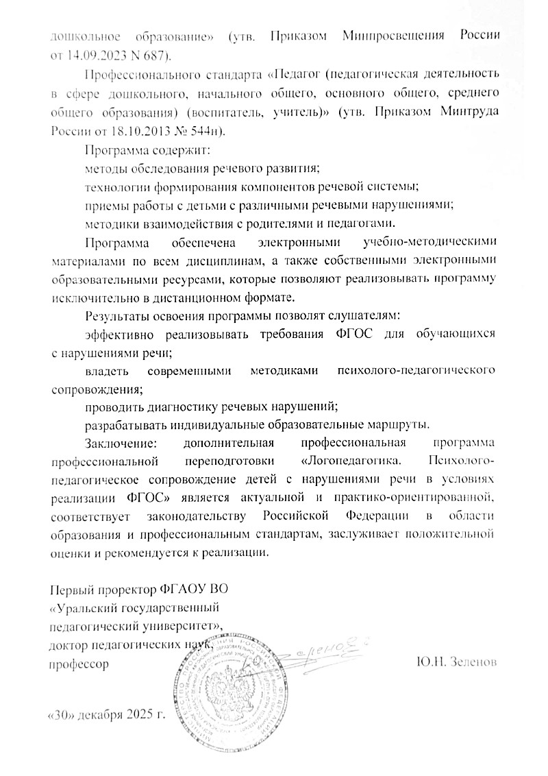 Читайте рецензию первого проректора — проректора по организационно-правовым вопросам ФГАОУ ВО «Уральский государственный педагогический университет», доктора педагогических наук, профессора Зеленова Ю. Н.