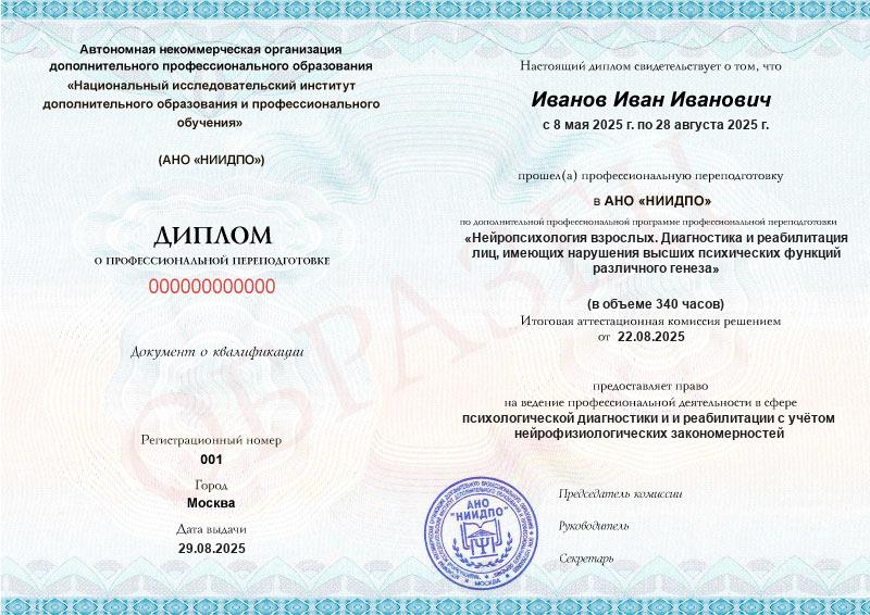Обзор программы профессиональной переподготовки «Нейропсихология взрослых. Диагностика и реабилитация лиц, имеющих нарушения высших психических функций различного генеза»