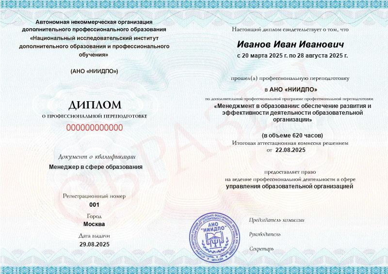 - Станете квалифицированным менеджером в сфере образования и получите диплом.