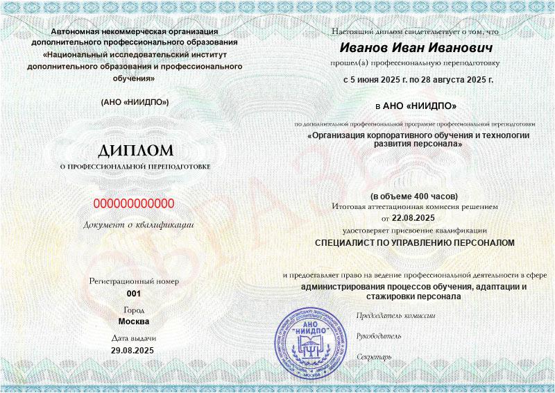 Согласно закону, дипломы о профпереподготовке могут быть оформлены в порядке, установленном образовательным учреждением (пункт 19 Порядка организации и осуществления образовательной деятельности по ДПП). Образцы квалификационных документов размещены на сайте нашей образовательной организации.