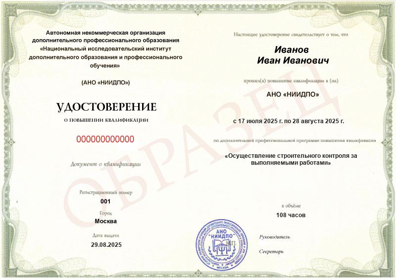 При наличии основного профильного образования после повышения квалификации по строительному контролю вы сможете работать: