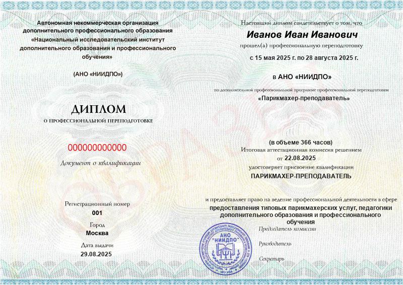 Обзор программы профессиональной переподготовки «Парикмахер-преподаватель» с присвоением квалификации «Парикмахер-преподаватель»