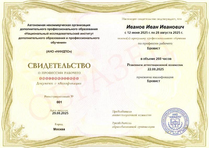 Обзор программы профессионального обучения по профессии рабочего «Бровист»