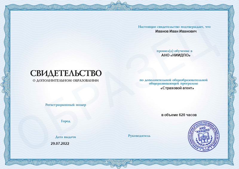 Да, документы оформляются на бланках с защитой от подделок, заполняются на русском языке, в них ставится печать АНО «НИИДПО».