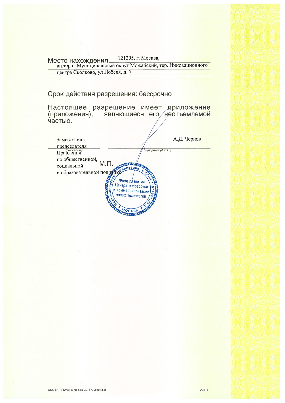 В АНО «НИИДПО» только легальное ДПО. Мы имеем разрешение на осуществление образовательной деятельности от ИНТЦ МГУ «Воробьевы горы» и «Сколково»