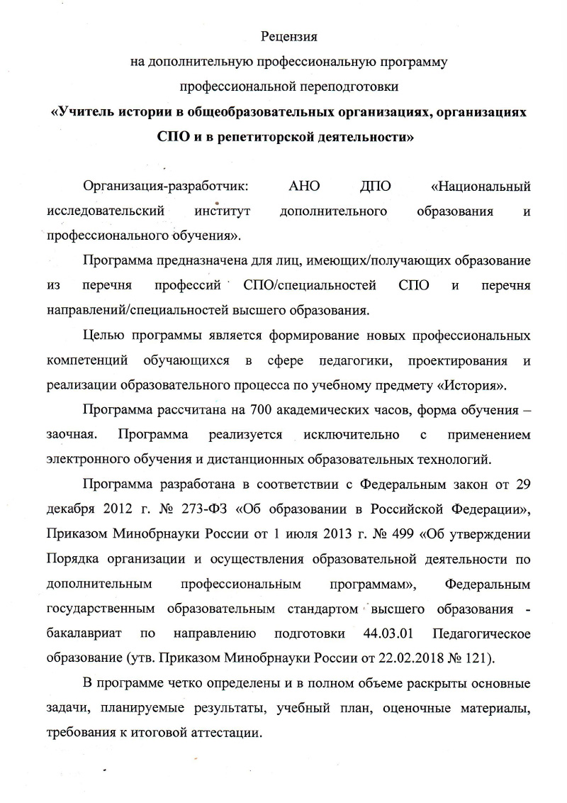 Читайте рецензию заведующей кафедрой истории и права ФГБОУ ВО «Шадринский государственный педагогический университет», кандидата педагогических наук, доцента Чипиновой Н.Ф.
