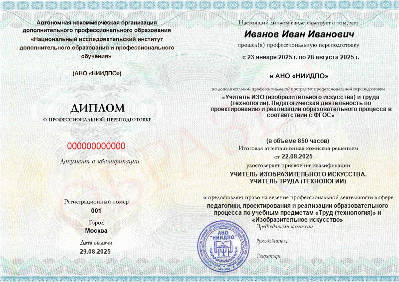 Учитель ИЗО (изобразительного искусства) и труда (технологии). Педагогическая деятельность по проектированию и реализации образовательного процесса в соответствии с ФГОС (850ч)